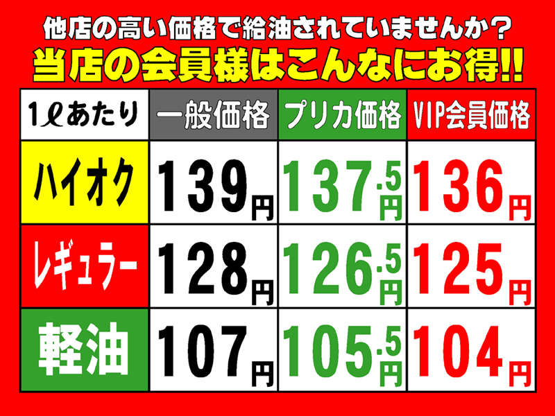 車検ご予約のお客様に対し車検満了月まで10円/L引き。
