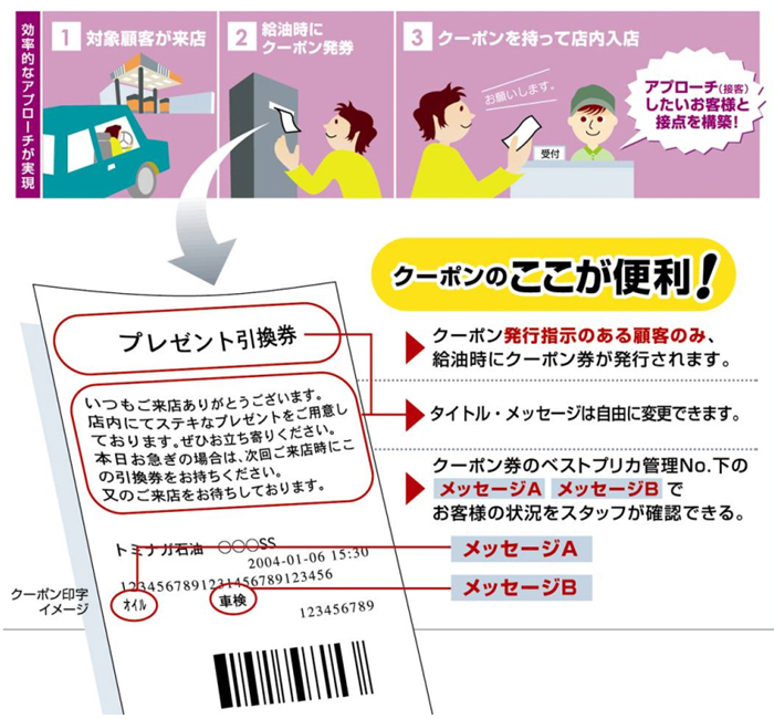 ●3ヶ月以前にオイル交換をした顧客へのみクーポン券発行。